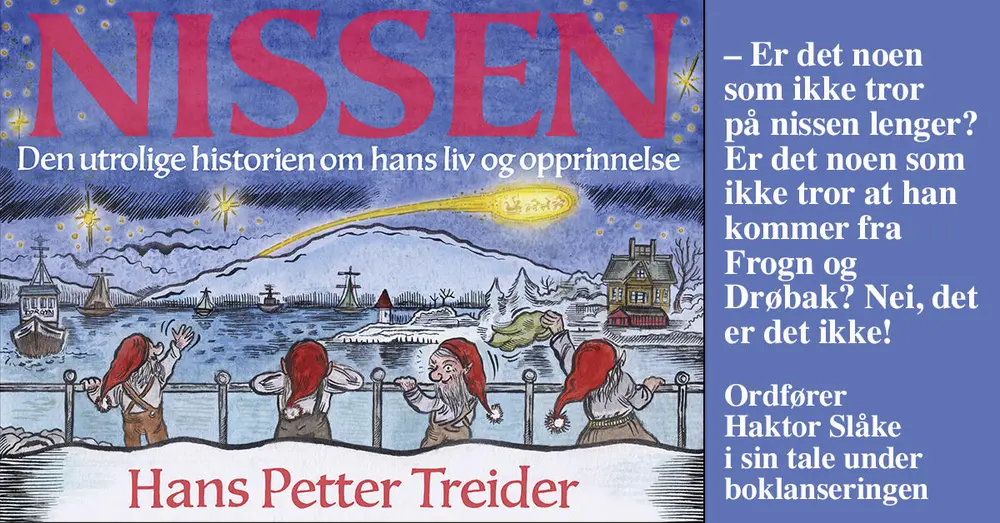 Denne juleutstillingen er basert på forfatter Hans Petter Treiders bok med samme navn. Boka, som tar mål av seg å bevise at nissen virkelig kommer fra Drøbak, ble nylig lansert for et fullsatt Smia kulturhus i Drøbak.