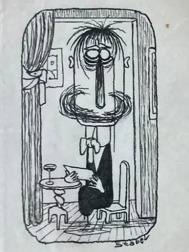 I 1975 ble Stabel invitert til å ha separatutstilling i Galleri Tanum i Oslo. Først takket han nei siden «bildene er altfor små», men etter innkjøp av større tegneblokk ble resultatet at han i februar 1976 stilte ut større tusjtegninger, til umiddelbar suksess. Ny stor tegneblokk ble innkjøpt.