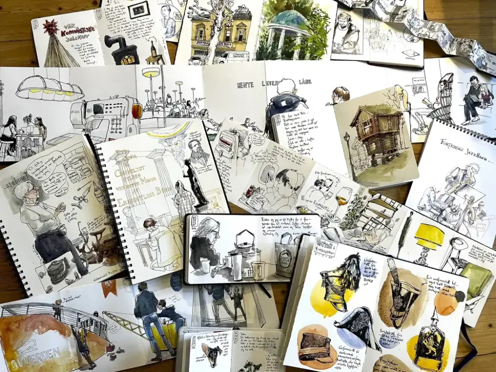 De siste årene har han blitt hekta på skisseboka og det å bruke tegning og tekst som en måte å forholde seg til verden på, samle minner og leke i hverdagen.