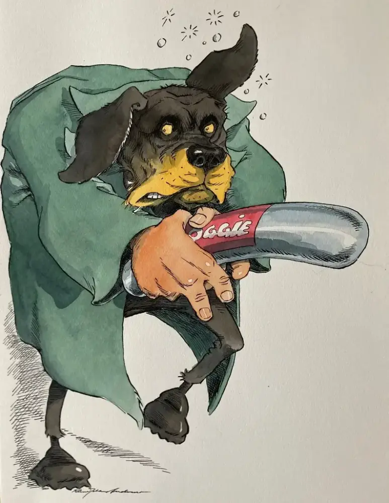 Det hele toppet seg for Andersson i 1998, da han illustrerte en sak om et ran med hundepølse som våpen. Vitsetegningen ble dråpen som utløste sammenbrudd og helomvending: Han sa opp jobben og våknet med dystre framtidsvisjoner. Tegnegudene var derimot på hans side, og samme uke ble han tildelt Statens kunstnerstipend.