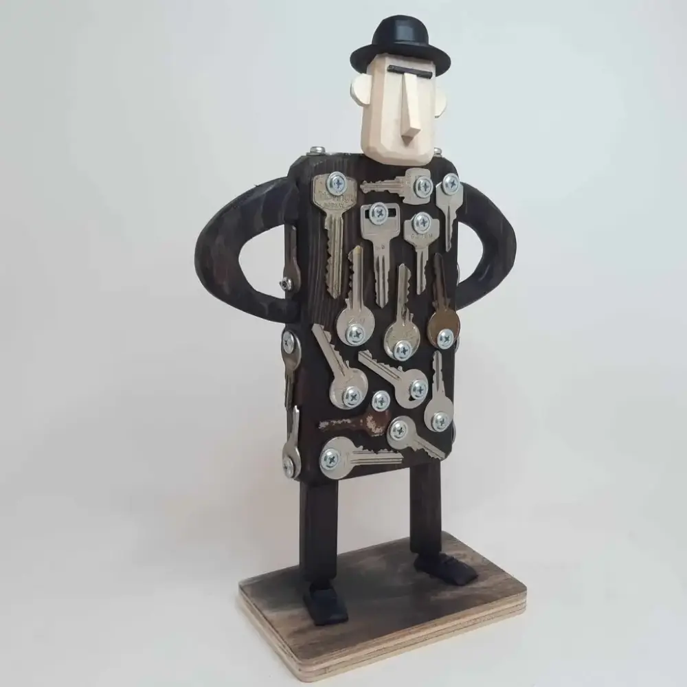 Hermund Storsæter er illustratør, grafiker og avistegner i Grimstad Adressetidende, og er en av våre mestselgende kunstnere, spesielt kjent for sine lune og morsomme sørlandsmotiv. De siste årene har han også produsert flere skulpturer som best kan betegnes som tredimensjonale karikaturer. Og det er med skulpturer - eller "treverk" som han liker å kalle dem selv - han deltar i årets sommerutstilling.
