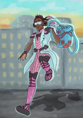 Her kan du møte en av ungdommene, Emilia, som tegnet superhelten sin: Antares.