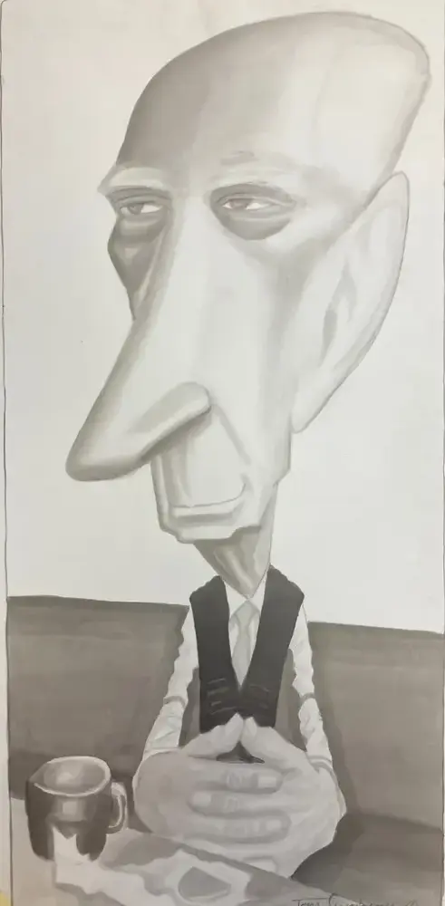 "Portretturer og karikatretter" var tittelen på Gundersens aller første katalog for over 40 år siden, og beskriver kunstnerens uttrykk: