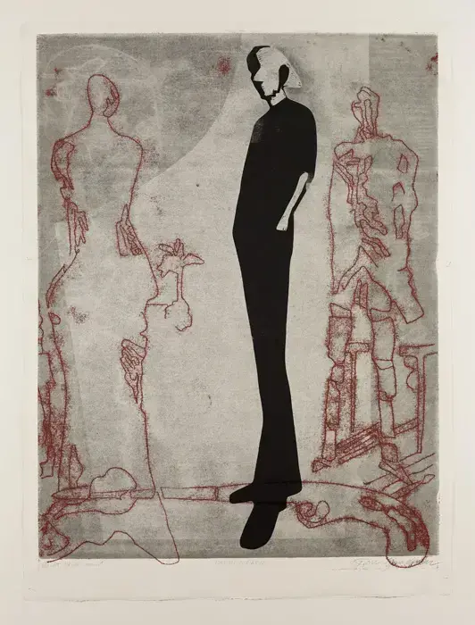 «Som grafiker arbeider jeg med en trykkepraksis som kan minne om palimpsesten. Gjennom årene har jeg utarbeidet et arkiv på 100-150 trykkplater med referanser til kunsthistorien. Disse bruker jeg ofte som underplater som trykkes i mer eller mindre transparente sjikt under mine egne portretter.