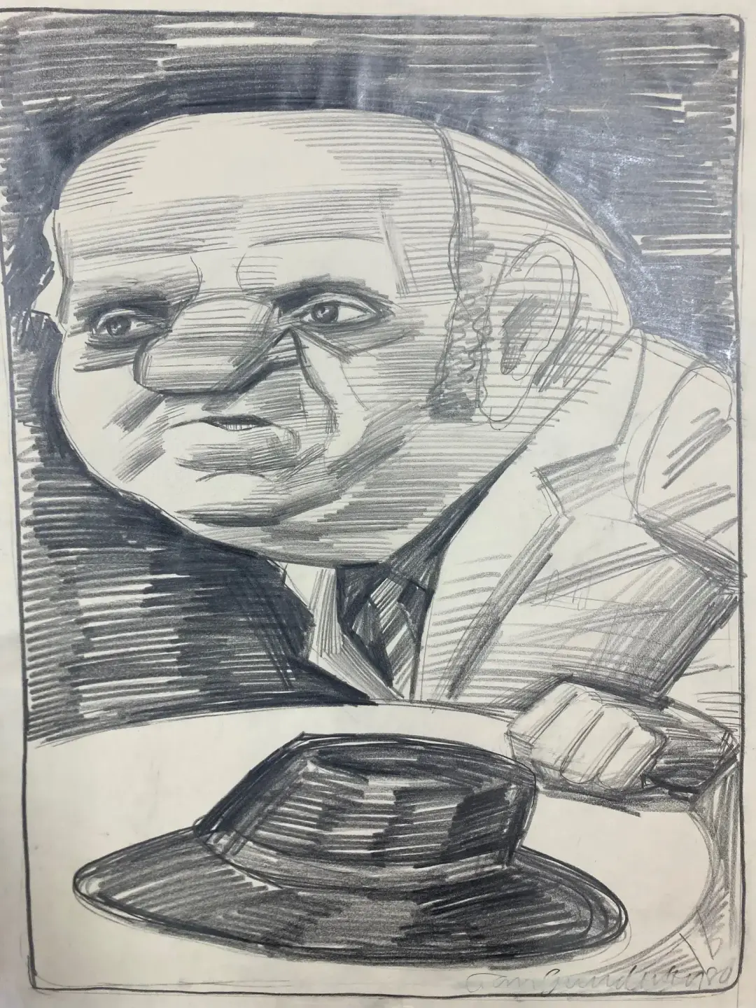 Gundersen er spesielt kjent for sine ikoniske tresnitt av Einar Gerhardsen. Landsfaderen ble tegnet for NÅ allerede i 1980, og det er spesielt spennende å se denne tegningen i samenheng med de senere arbeidene.