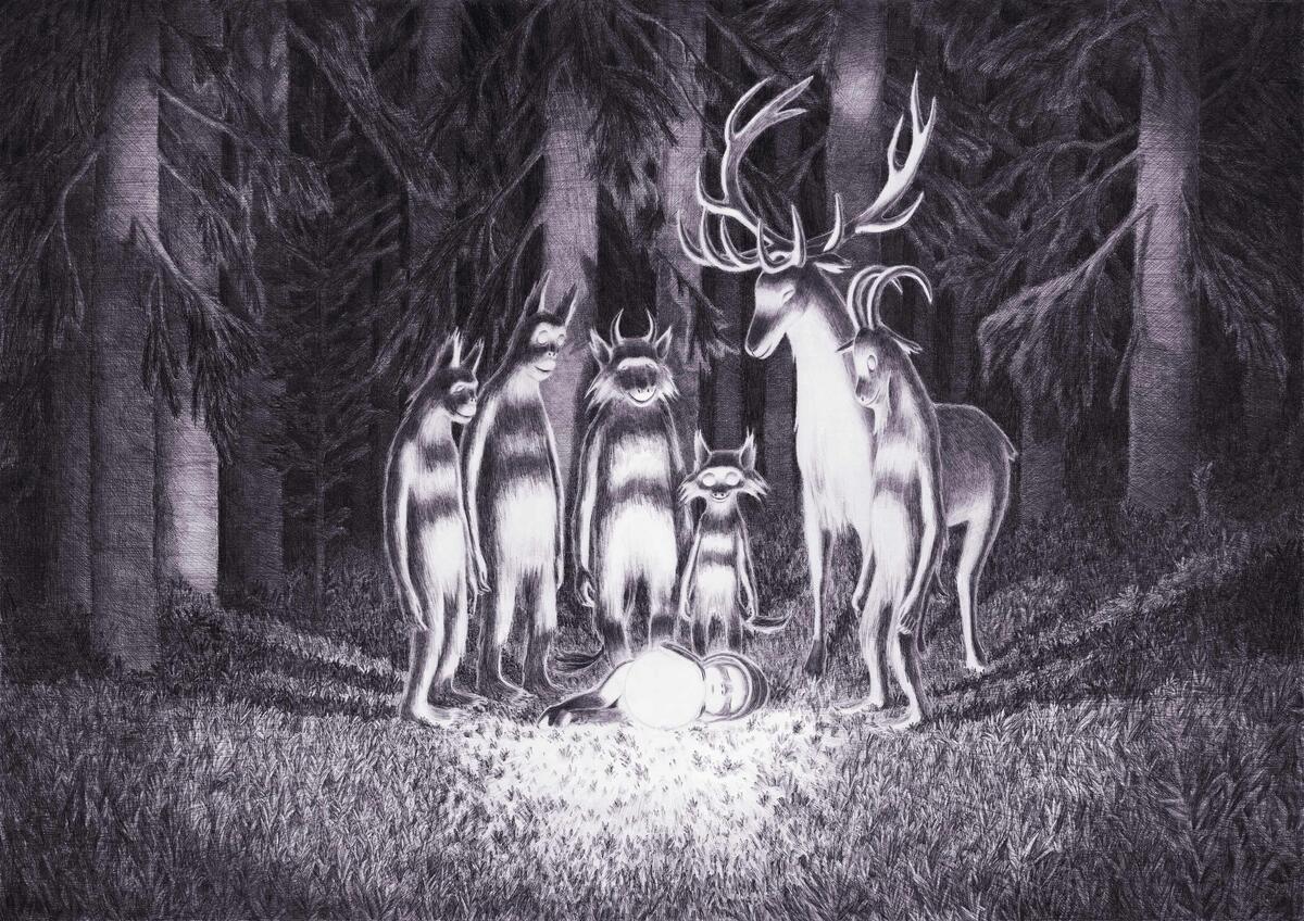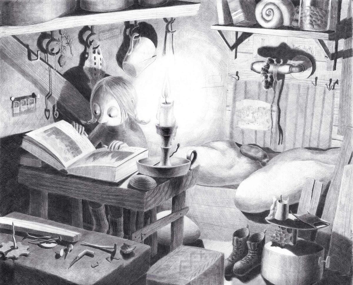"Jeg bruker kulepenn av to grunner," sier Tuva Synnevåg. "For det første så gir den meg dét jeg vil ha: en myk og variert linje omtrent som blyant. Med kulepenn har man en trykkømfintlighet som gir alle valører mellom lyst og mørkt. I motsetning til blyant så kan den ikke gnis ut, og det gjør den atskillig enklere å jobbe med for meg.