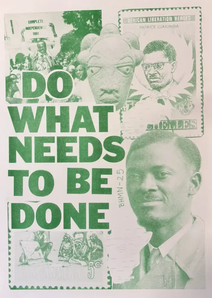 Med dette som utgangspunkt har vi satt sammen en utstilling med verk som kommer fra to ulike prosesser: silketrykk laget av kunststudenter fra Prosjektskolen Tøyen, og risotrykte plakater laget av deltakerne i workshopen Express Publishing/Publicações Expressas, arrangert som en del av Black History Month Norway.
