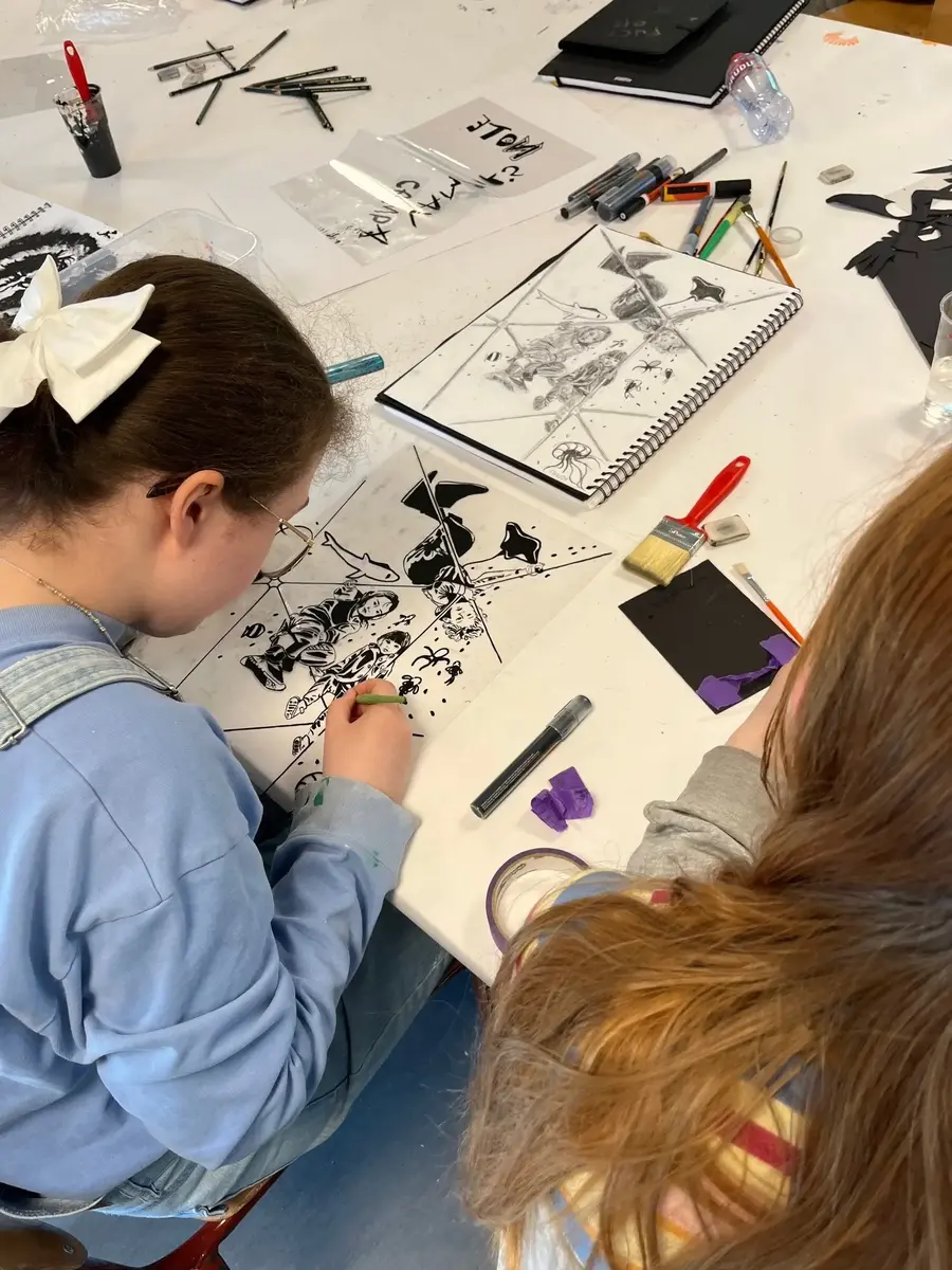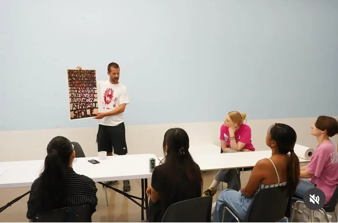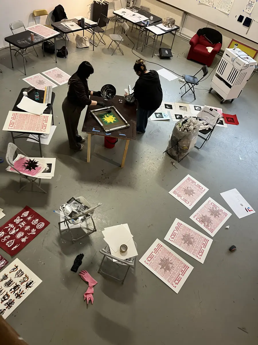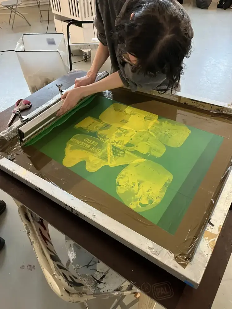 Vi holdt en presentasjon om kunst og aktivisme som fungerte som et utgangspunkt for studentene til å skape bilder som reflekterer deres stemmer og verdenssyn. I løpet av to uker, under Joakims veiledning, eksperimenterte gruppen med silketrykk – en reproduksjonsteknikk som er sterkt assosiert med aktivisme og DIY-bevegelsen på grunn av dens effektivitet i å spre budskap.