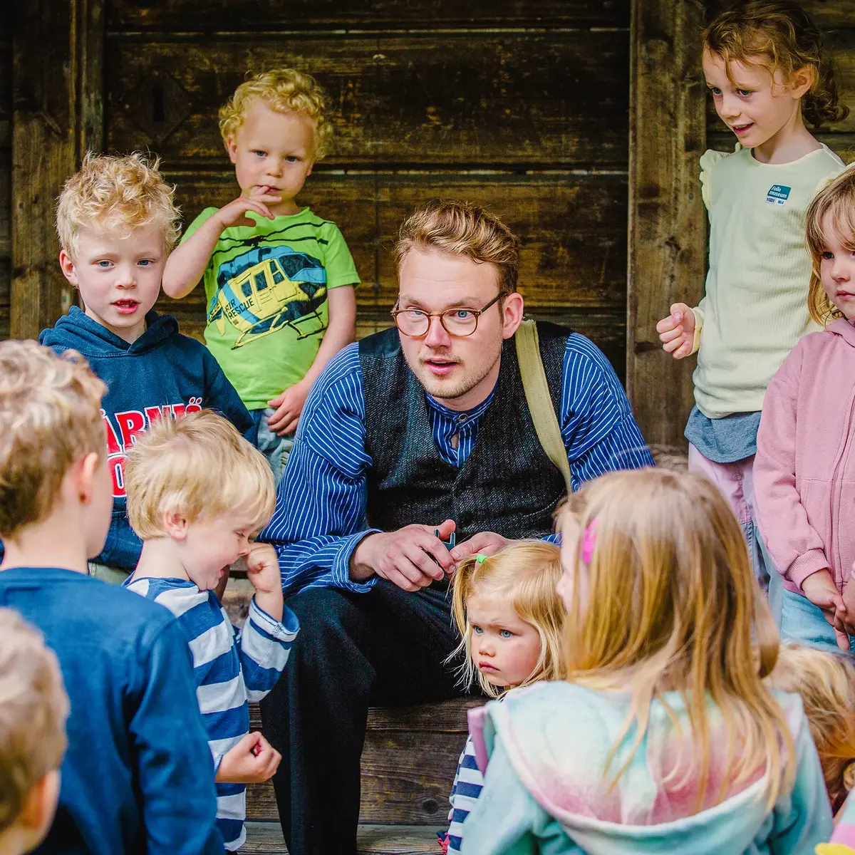 Bli med på "Ta tjeneste: stell dyra", en omvisning der barna får oppleve hverdagslivet på gamle gårder – med skitne fingre, ekte arbeid og mye latter.