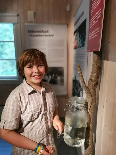 Visste du at vannn som renner nordover i følge norsk folketro skal være helsebringende? Elva Risa i Eidsvoll renner nordover. Vi har hentet vann derfra som vi har i en beholder i utstillingen. Har du noen plager? Kom og prøv vannet! Det skal visst også virke foryngende.
