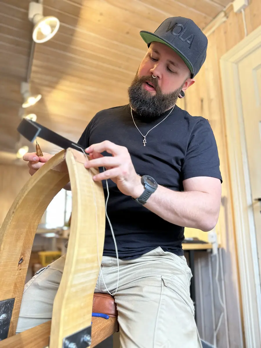 Veskesalmaker Paul Vink i arbeid.