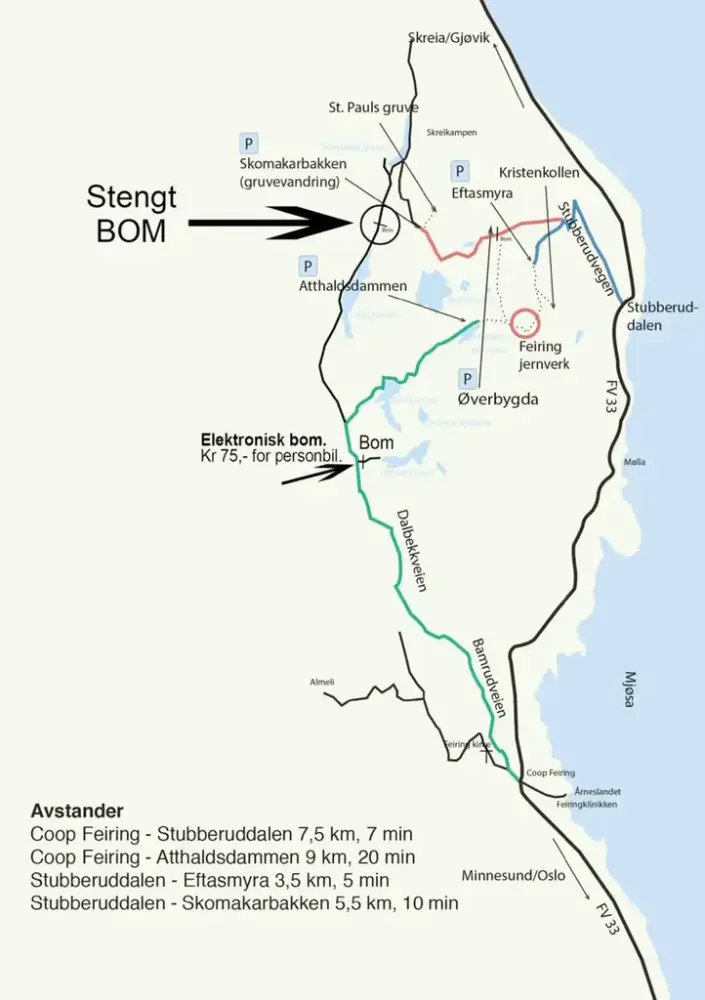 Oppmøtested: Skomakerbakken - med veibeskrivelse fra FV 33, Stubberuddalen.