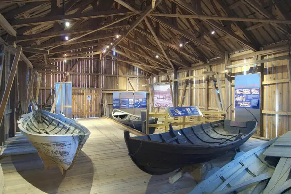 The log driving museum has several in and outdoor exhibitions telling the story of log driving in Norway. The log sorting and bundling facilities in the river are accessible by more than 1 km of floating pathways.