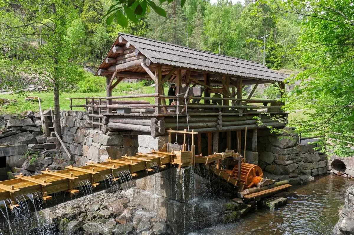 Den rekonstruerte oppgangssaga ved den nedre dammen i Gjersjøelva. Bækkelund, Bjørn / Anno Norsk skogmuseum. CC BY-ND 4.0