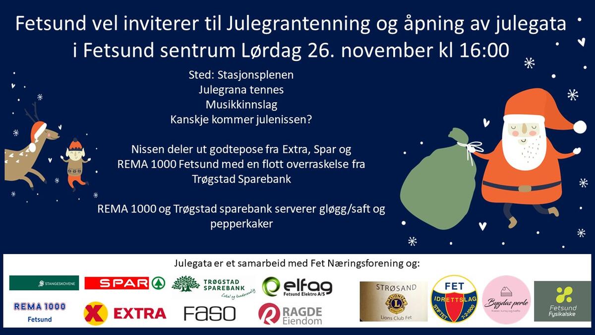 Når vi stenger julemarkedet lørdag er du velkommen til julegrantenning i Fetsund sentrum