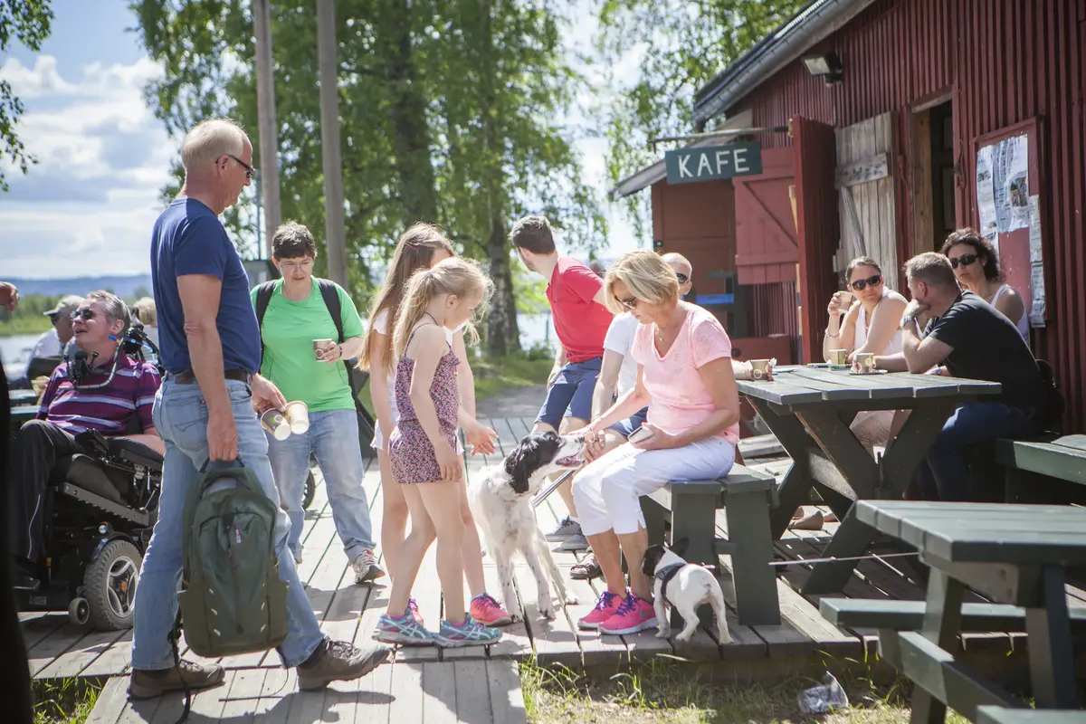 Koser seg på Bryggekafeen