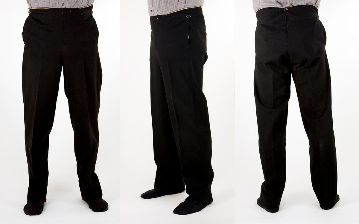 Langbuksene fra Gåvim er modell for mannsbunadens bukser. De er trolig noe yngre enn frakken, og muligens har Ole Helgesen (1774-1842) fått dem på sine eldre dager.