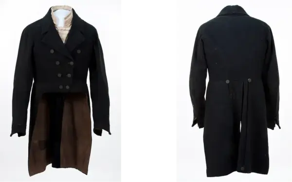 Frakken, som vestene og buksen nedenfor, stammer fra Gåvim i Ås. Ole Helgensen Gaavim (1774–1842) har trolig brukt frakken. Den er figursydd med avskåret live foran og langt ryggstykke som ender i to skjørt.