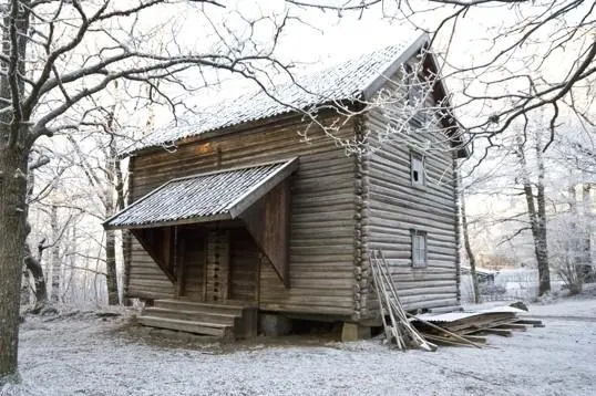 Sagstua. Gjenoppført på Follo museum i 1993.