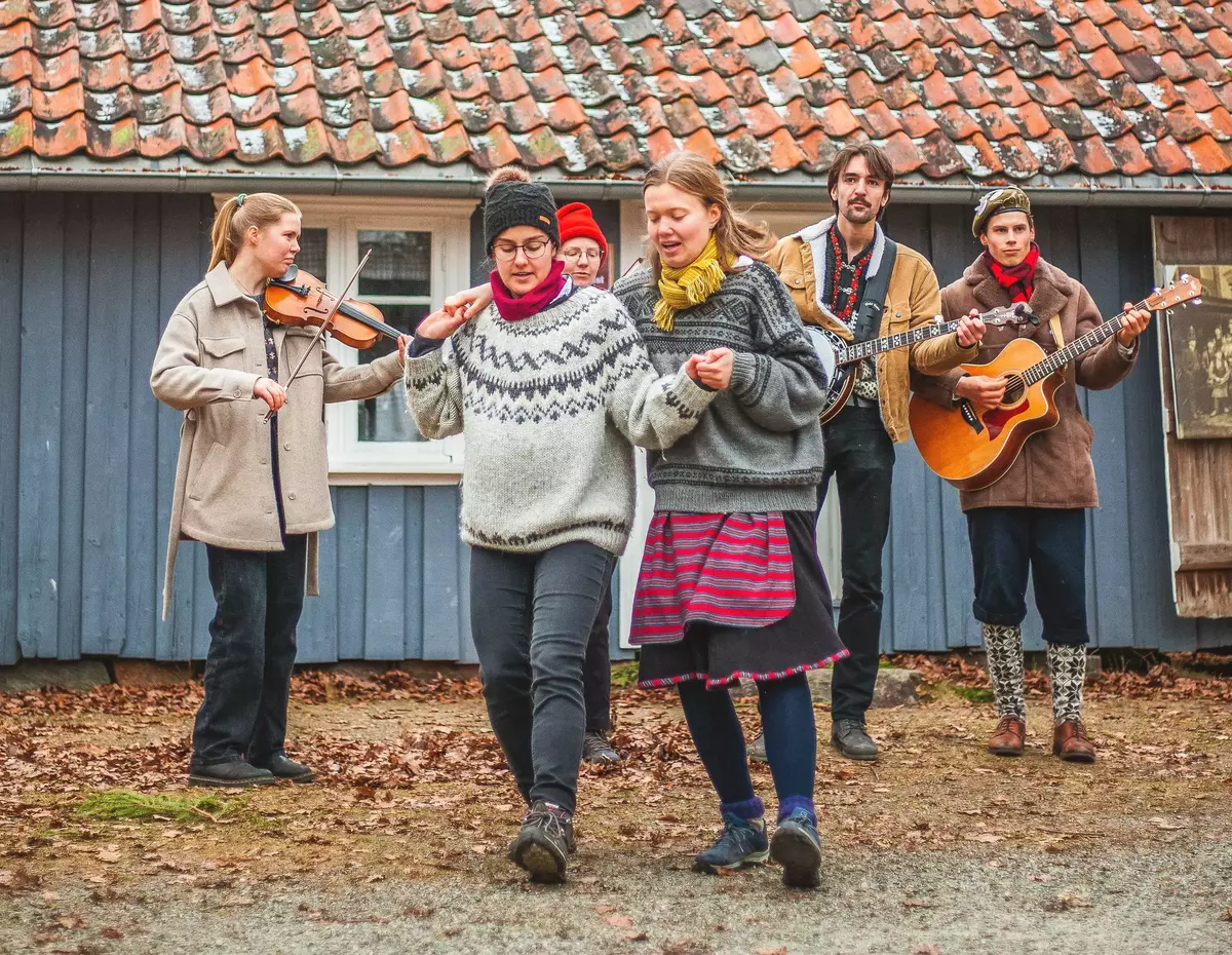 Fra ca. 17.45 serverer vi kræsjkurs i folkedans, før vi spiller opp til skikkelig fest fra 19.00.