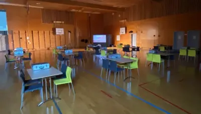 Opplevelsen kan rigges i forskjellige lokaler – gymsal med gruppebord og stoler, auditorium med bord langs benkeradene, konferanserom osv.