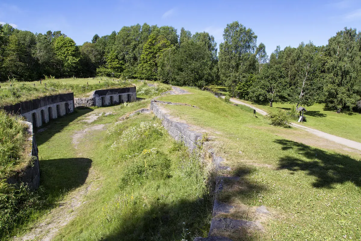 På grunn av utviklingen av nye, sterkere og mer presise kanoner var Oscarsborg festning foreldet da den sto ferdig. Det ble derfor mot slutten av århundret anlagt et nytt batteri med en frontal voll foran festningen mot sør samt en undervannssperre (sjeté) i vestre fjordløp. I tillegg ble det på grunn av Kaholmenes relativt lave beliggenhet, anlagt utenverker på begge sider av fjorden og på Håøya. Veisvingbatteriet hadde skuddfelt mot fjorden og skulle styrke Oscarsborg og Kopås' bestrykningsmulighet. Seierstenskansens skuddfelt vendte mot veiene som førte til Drøbak og samvirket med Heer og Kringerud skanse.