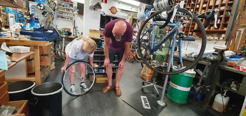 Vår egen sykkelreparatør Truls Erik Johnsen og makkeren hans stiller opp for å hjelpe med små reparasjoner og justeringer som gir, bremser og enkel service. Her handler det om å fikse, lære og ha det gøy – uten at det blir verken teknisk eller komplisert.