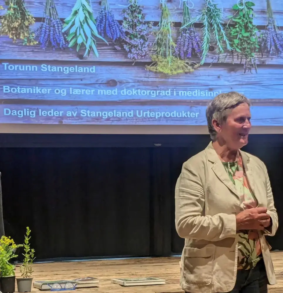Torunn Stangeland er botaniker og urtemedisiner, og leder Stangeland Urteprodukter – en familiebedrift med lang tradisjon for dyrking og bruk av medisinske urter. Hun kombinerer fagkunnskap med praktisk erfaring og er kjent for å formidle urtekunnskap på en inspirerende og tilgjengelig måte.