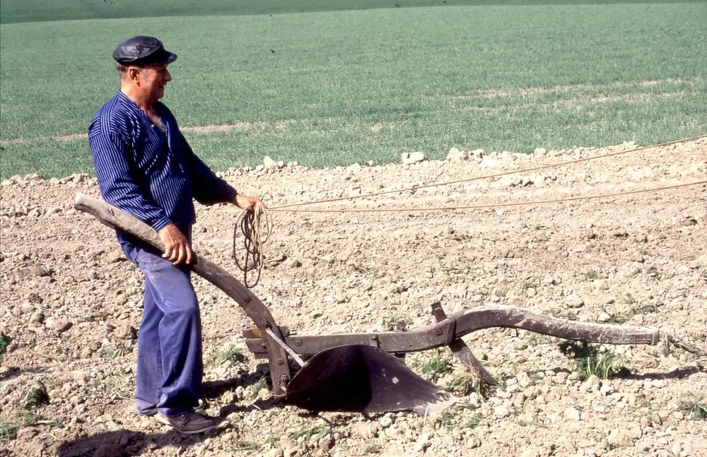Denne plogen er trolig laget av en av lokal plogsmed. Den er preget av det naturvokste, hjemlige virke med naturlig kroket ås og styre, men veltefjøla og den langstrakte formen forteller om påvirkning fra den engelske plogen. Slike ploger ble brukt på Romerike gjennom store deler av 1800-tallet.