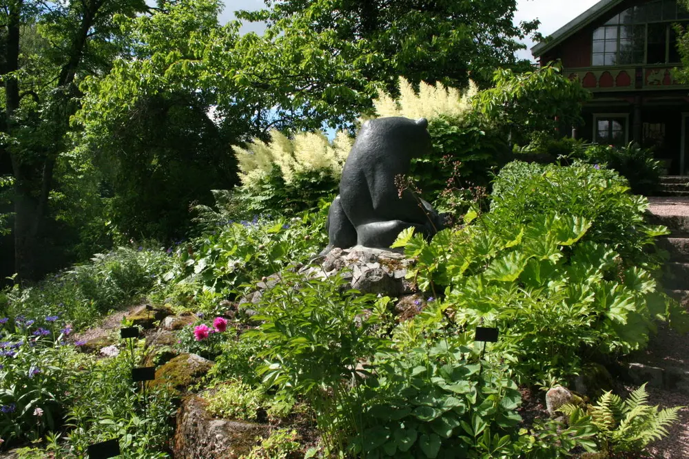Skogskjegg (hanplante) i blomst på Asker museum. På svensk kalles den "plymspirea", altså "strutsefjærspirea", et forståelig navn når en ser de brusende blomsterstandene. Foto: Mari Marstein/ MiA