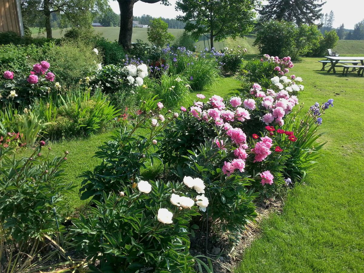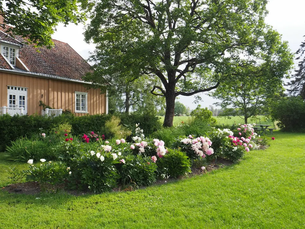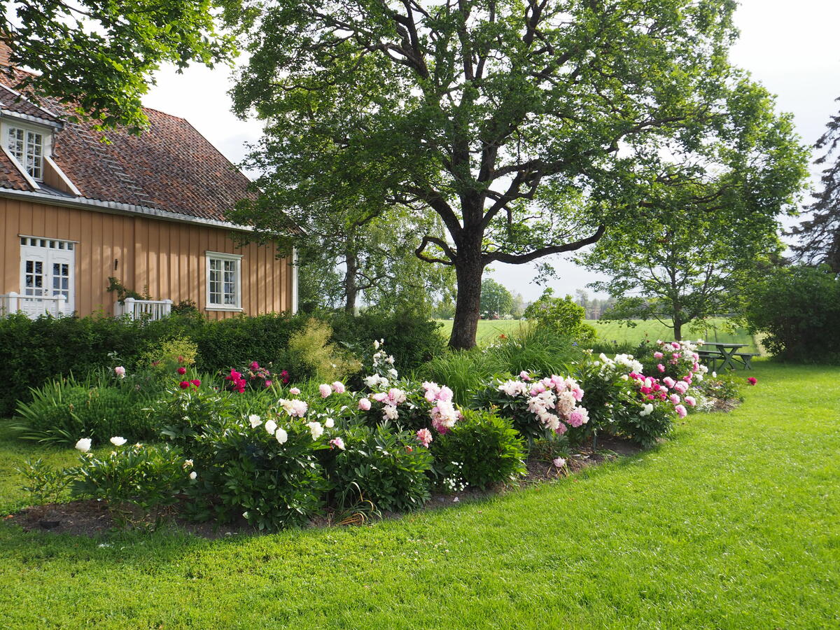 Silkepionene (Paeonia lactiflora) i full blomst i månedsskiftet juni-juli. Mari Marstein/MiA - 7/7