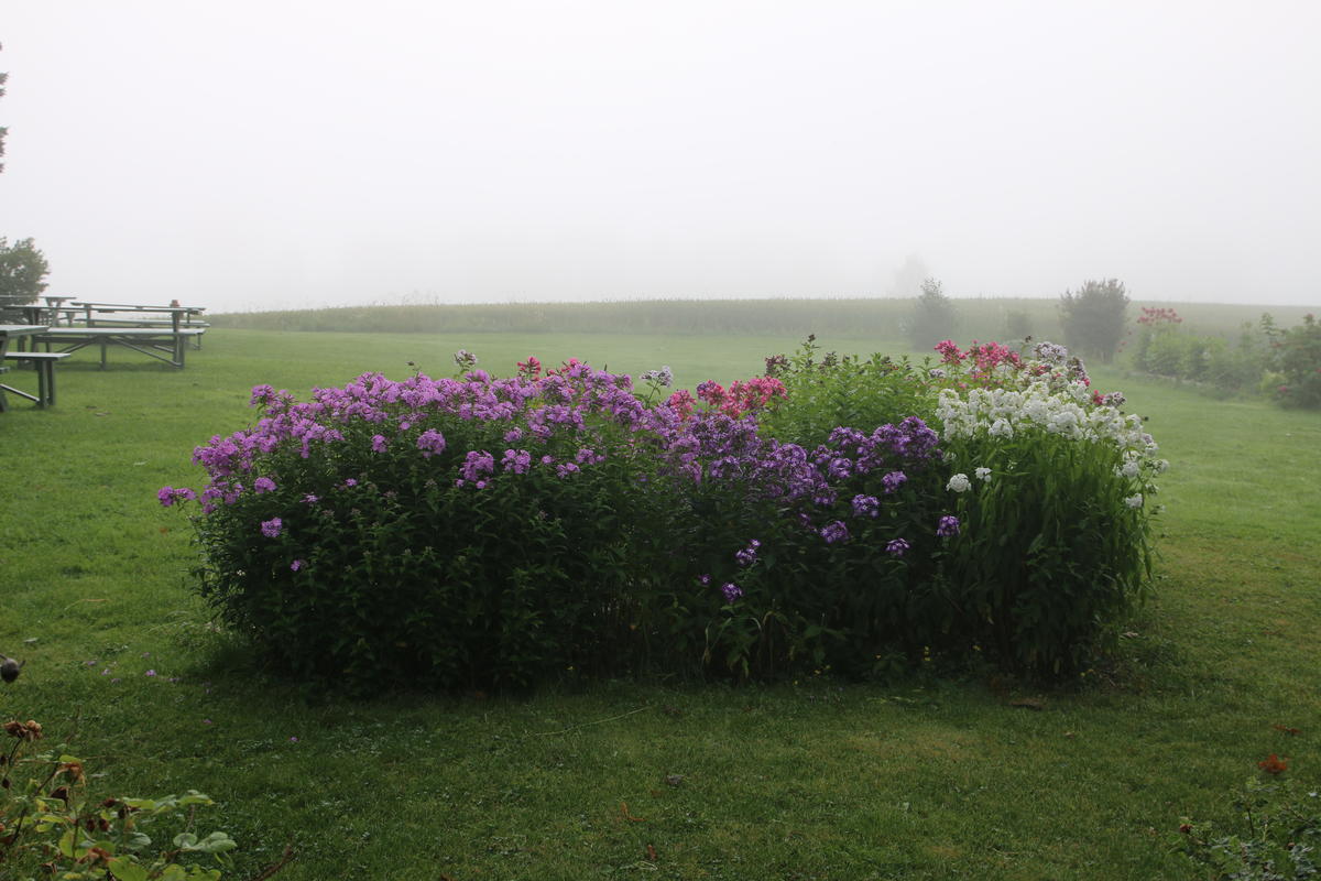 Floksbedet i trolsk høstlys med morgentåke. Foto: Mari Marstein/MiA - 6/6