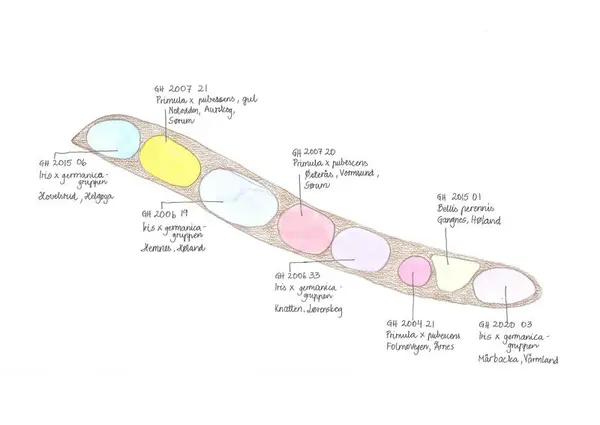 To av auriklene i bed 23. Begge har en lang historie med deling fra hage til hage i Sør-Norge, og begge er formidlet av en informant fra Sørumsand. Mari Marstein/MiA