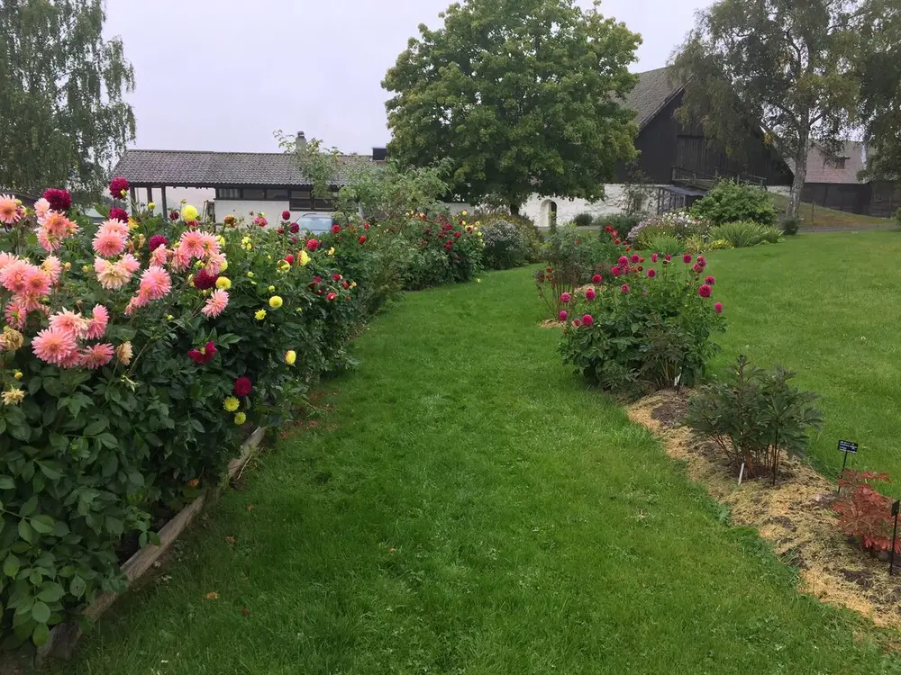 Bed 25 ligger parallelt med georginebedene, og de bader i vakkert lys på solrike sommerdager. Mari Marstein/MiA