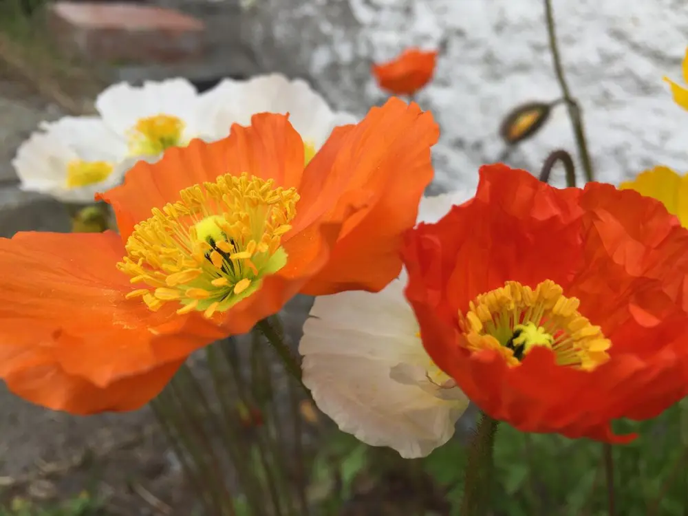 Sibirvalmuer (Papaver croceum) i hvitt, gult. oransje og rødt. Mari Marstein/MiA - 2/3