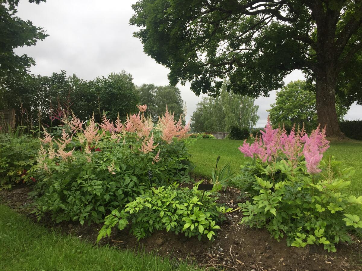 Alle våre astilber er samlet her i bed 5. De blomstrer vanligvis fra midten av juli. Astilber, eller sildrespir som er det norske navnet, vil ha litt fuktig jord. Vi holdt på å miste dem i tørken sommeren 2018. Da var det bare små rester tilbake. Ut fra disse restene har de kommet seg veldig fint, heldigvis. Mari Marstein/MiA
