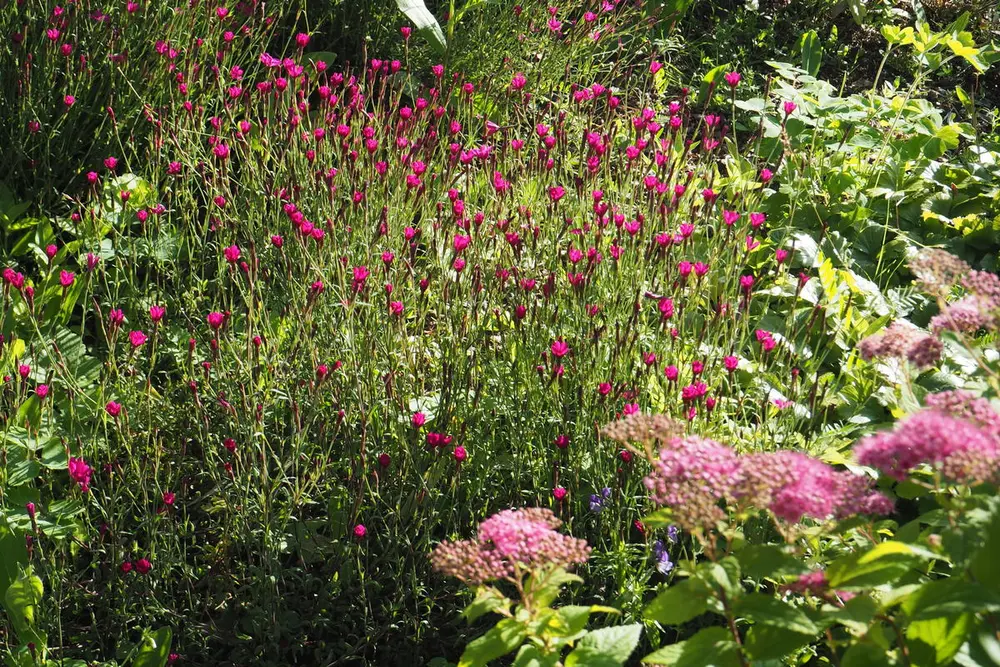 Engnellik, slik den vokser i hagen på Sandmo. Den danner tette puter, og blomstene svever i løse skjermer over bladverket. Foto: Mari Marstein/MiA - 2/2