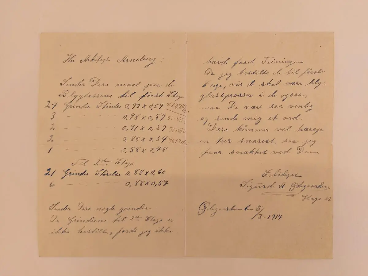 Brev fra vindustilvirkeren til Arneberg