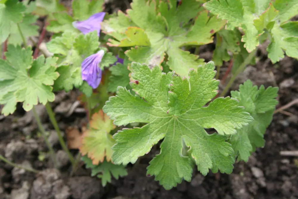 Bladflikene utgjør nesten en hel, sluttet sirkel. Det gjør det lett å skille denne fra andre storkenebbarter. Foto: Mari Marstein/MiA - 3/3