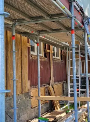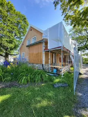 Sommeren 2025 begynte arbeidet med maling av Gulbygningen. Først ble den eldre maling skrapt av bygningen. Det ble oppdaget at deler av panelet var i dårlig stand, og dette ble derfor skiftet ut. Under uskiftningen dukket det uventet opp en eldre rødmalt panel på innsiden av den gule. At dette panelet fortsatt var bevart på bygningen, var ukjent for oss. Vi fikk dokumentert dette før det nye panelet ble lagt utenpå igjen. Malerarbeidene ble ferdigstilt i november.
