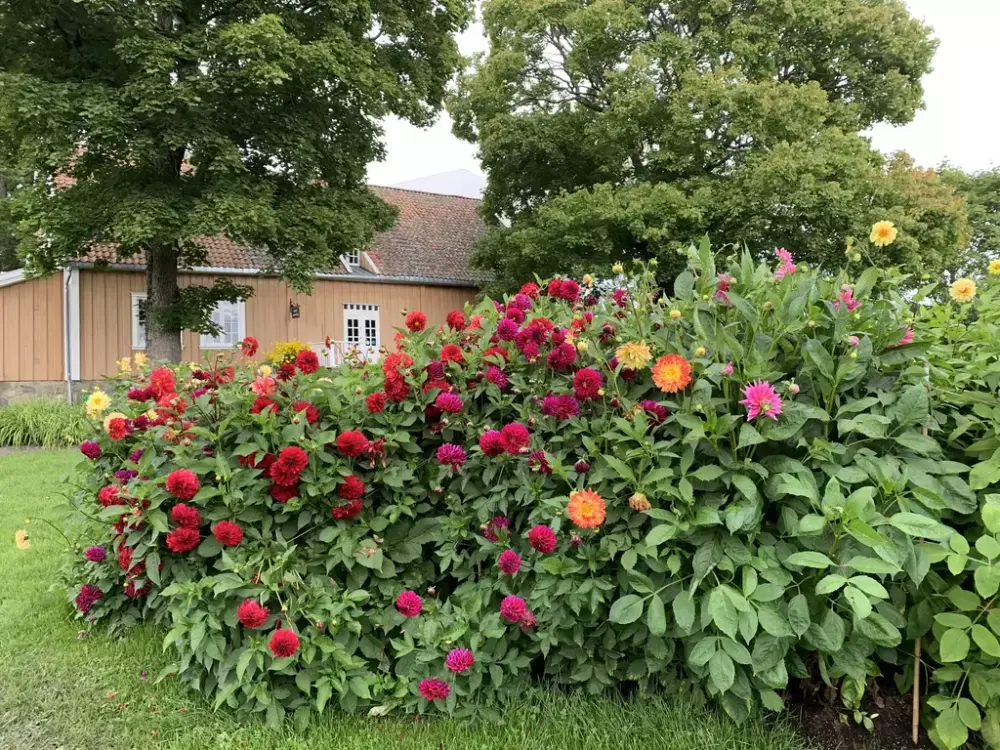 I ventebedene til museets gartner står det mange georginer. Vi har i år fått lov til å plukke blomstene for å binde de sammen til buketter. Som deltager får du være med på å plukke blomster, lære om stell av georginer og binde din helt egen blomsterbukett. Dyktige Ane Aadland er instruktør, og hjelper deltagerne med å gjøre det ordentlig.