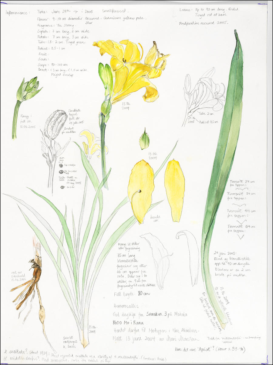 Denne lys gule dagliljen fra Folberg i Nes har vært vanlig i norske og svenske hager fra begynnelsen av 1900-tallet. Den har mye Hemerocallis citirina i seg, og den blomstrer i juli. Foto: Mari Marstein/MiA