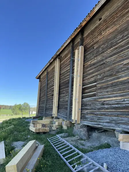 Denne gangen ble konstruksjonen løftet nesten 40 cm på det meste med omfattende stålvaiere, strekkfisker og jekker i store deler av stallen og låven. Nå hviler ikke andre etasje på stallinnredningen lenger, men det gjenstår fortsatt omfattende arbeid med hele komplekset.