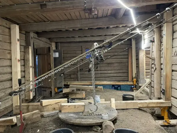 Del to av sikringen av stallinnredningen foregikk over to uker i november. Da var samme gjengen fra Aabol Tradisjonsbygg a/s, Grendebygg As, Aas & Nordal Entreprenørforretning tilbake på museet.