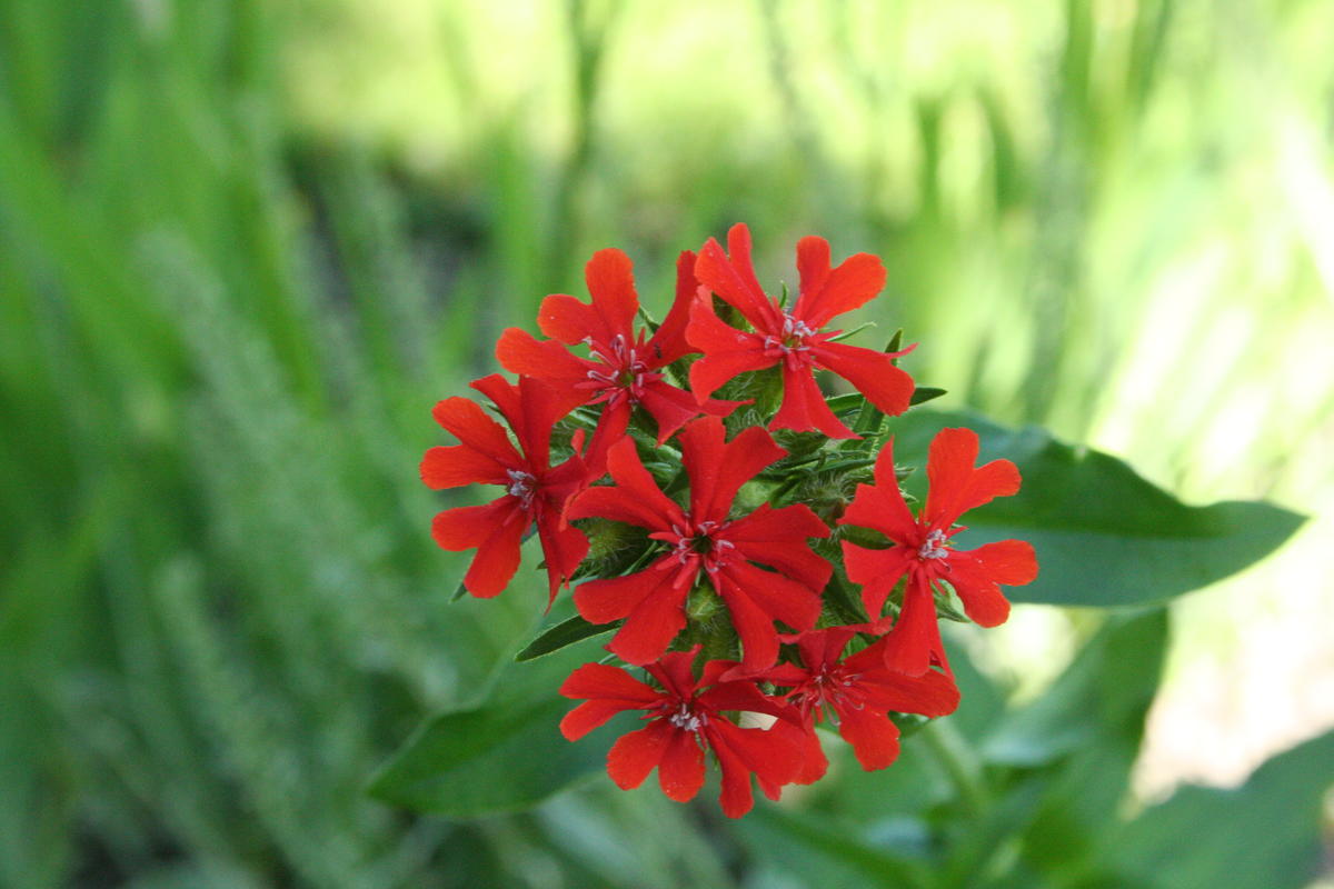 Brennende kjærlighet blomstrer samtidig med gul fagerfredløs og oransje brannliljer. Det kan bli en fin sammenplanting, men de er også flotte samme med oransje brannliljer og revebjeller.