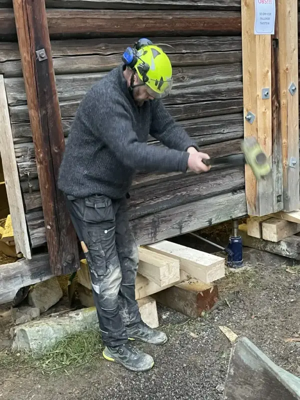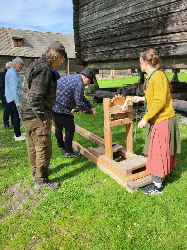 I slutten av oktober fikk vi besøk av to trinn fra Vormsund Ungdomsskole, 8. og 10. trinn, som kom med gratis buss fra Sparebankstiftelsen. Elevene lærte om istandsetting og lafting gjennom en rebus ute på tunet. Det er første gang vi har undervist om dette på denne måten, men det var gøy og frister til gjentagelse.