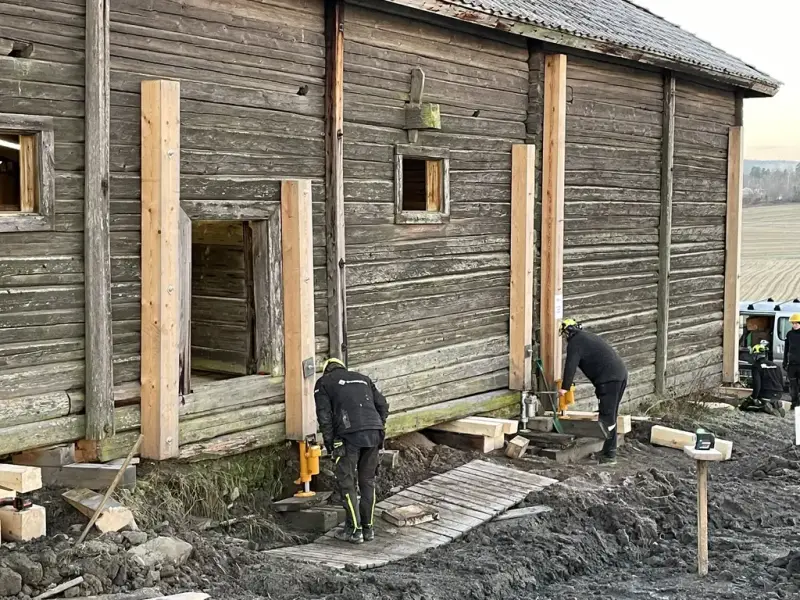 Bygningskomplekset har over tid sunket ned i bakken på grunn leirgrunnen. Dette har gjort at søylene som skiller plassene i stallen har blitt belastet. For å lette trykket ble stallinnredningen sikret i to omganger. Del en ble gjennomført i mai, og del to ble gjennomført i november. Under sikring del 2 ble deler av låven jekket nesten 40 cm!