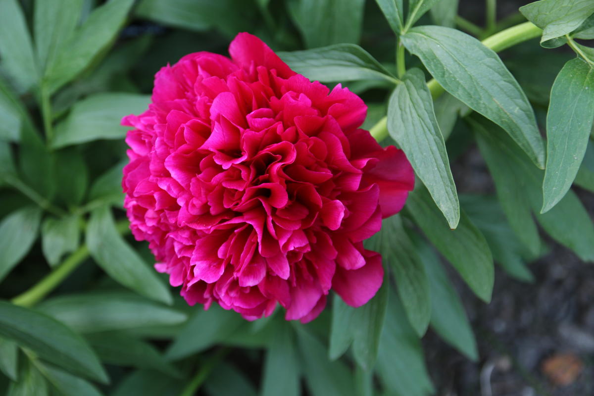 'Rubra Plena' har en flott, tettfylt, mørkerød blomst. Foto: Mari Marstein/MiA