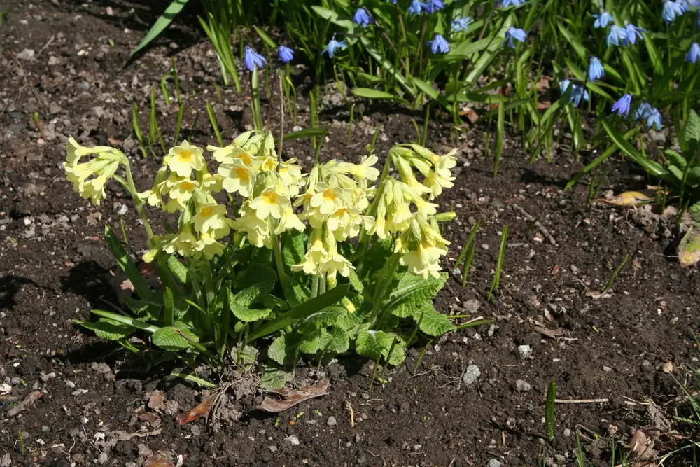 Ved siden av står sorten ‘Dorothy’, en engelsk sort fra før 1940. Den kjennetegnes ved et svakt rosa skjær over de lyst smørgule blomstene. Den kommer tidlig, vanligvis i månedsskiftet april-mai. Primulaene vil gjerne krysse seg, så jeg må passe på å luke bort alle småplanter som dukker opp ved siden av de gamle sortene. Jeg må passe på å ikke gå i surr mellom de gamle og de nye.