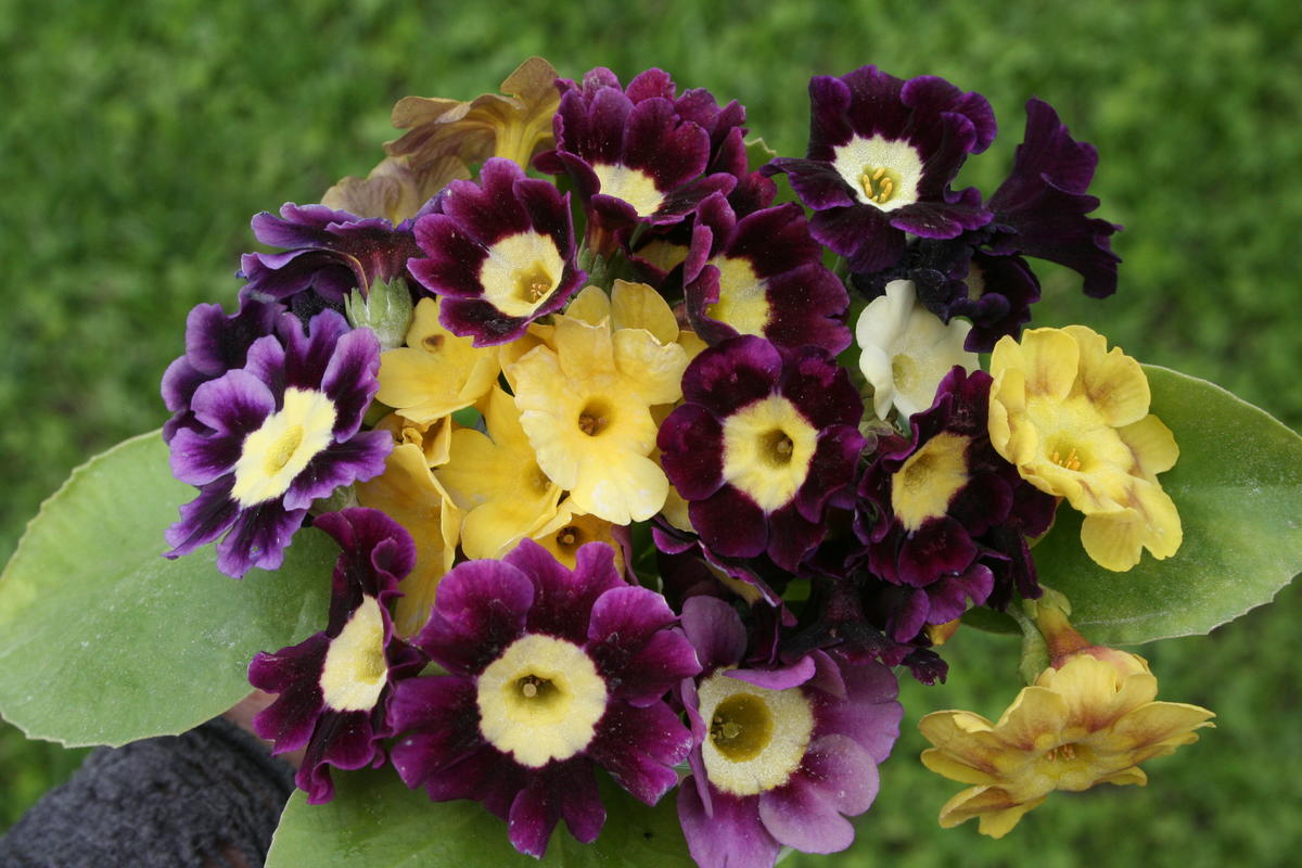 En fin bukett med noen av våre aurikler. Foto: Mari Marstein/MiA